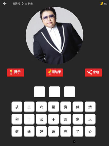 选取最流行的“我是歌手”歌曲,快来和你的朋友一起来猜吧。 全民猜歌是一款休闲益智猜谜类游戏。采集了我是歌手、流行歌曲、经典老歌、网络歌曲等经典歌曲,如果遇到不好猜的可以可以通过微信向您的朋友求助,大家一起玩才好玩。 游戏玩法: 1:认真听歌。 2:在提供的21个汉字中找出正确歌曲名的答案,按照正确顺序依次填写。 3:答案正确,游戏过关。不知道答案也没关系,还可以点击帮助按钮向好友求助。 4:过关后可继续玩下一关卡!