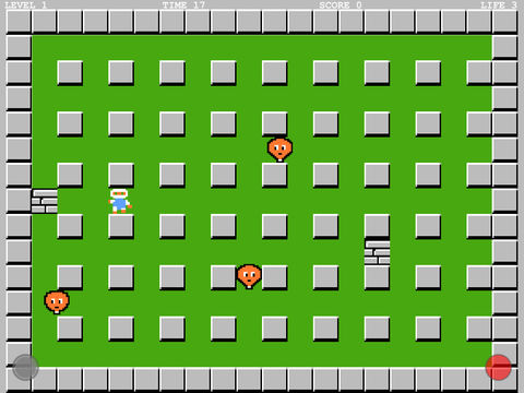 有些儿时的记忆即便是时间也无法抹去其光华,像红白机上的超级玛丽、网游里的泡泡堂、手机中的推箱子,相信很多玩家都印象深刻。 游戏介绍 这是一款怀旧游戏。游戏中使用放置炸弹的方法来消灭敌人并寻找每局隐藏在墙里的暗门来过关。关卡共50关。 虚拟按键能否找回很久以前的感觉。左边分别可控制上下左右移动,右边点击可放置炸弹。本作操作上并没有什么难度,易上手,与手柄操作有异曲同工之妙。具有透明度的按键显得设计感很足。 在这个怀念的季节,很好的慰藉了玩家。