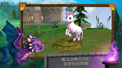 很久以前在一片遥远的大陆上,青蛙国王决定给魔法动物宝贝们开辟一个公园,让他们得到爱的照顾,也方便有爱心的新主人来收养这些动物。但他没法独自完成这个任务,所以需要你的帮助。响应他求援的呼唤,在 Fantasy Baby Animals 中给他提供帮助。 * 继 PetWorld 和 DogHotel 后, Tivola 又推出一款让人喜爱的动物养成游戏 * 照顾这些神奇的生物,例如飞龙、独角兽、凤凰,狮身鹫首兽和鹿角兔 * 可爱的动物,梦幻的画风 * 不断推出新的小动物和更多惊喜 * 适合 7 岁或以上的儿童 魔法动物宝贝们需要你的帮助 在你完成了魔法师学徒的一些功课后,现在轮到你来款待和照顾这些有魔法的客人了。你要保证他们不缺什么,始终有新鲜的食物和水源。你要给他们无私的爱与关护。而不幸的是,这些小家伙们被一个邪恶的女巫所诅咒,你必须找到正确的魔法来解救它们。 与飞龙、独角兽、凤凰等神兽一起玩耍 在休养期间,这些 Fantasy Baby Animals 需要许多关爱以及参加各种活动。喂给它们好吃的、经常抚摸它们,以及用装饰品点缀它们的窝,让它们真正觉得轻松自在。只有得到治愈又心情愉快的动物才能找到它们归属的骑士、巫师,或者是国王。