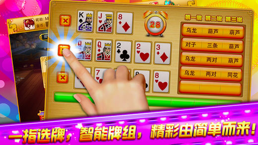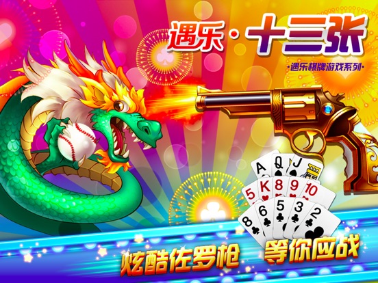《遇乐•十三张》 能让你感受到经典的打枪玩法,简单方便的选牌功能,中国风的精美画面,是史上最经典、最时尚的棋牌类游戏。你的智慧和好运全都集中于此,一手牌全靠你的机智安排取胜!这里是玩心跳,拼勇气,比智慧的集结地,这里必定是你一展身手的绝佳平台!这里也会给你棋牌生涯带来新的巅峰! 十三张是扑克游戏的一种,是风靡全国、席卷香港和东南亚的心跳玩法 。该游戏适于 2、3 或 4 名玩家。 通常由四人一起玩. 每人发13张牌。玩家把13张牌分别以头,中,底同时摆出来比大小,确定胜负,注意出牌时,第一墩<第二墩<第三墩,未按照此规则出牌者,视为相公。各家先比牌型,再比数字(点数),不比花色。三墩分别比牌是一种体现着人们智慧和勇气的精彩扑克游戏 游戏特色: +++经典打枪玩法,刺激你每一个呼吸和心跳+++ 最经典的玩法,最公平的竞赛,最合理的房间分配,最强大的防作弊技术。让你尽情的享受十三张的乐趣。 +++一指选牌,智能牌选。让新手不再烦恼+++ 系统自动为你备选牌组,轻松一点即可完成牌型设置,当然你也可以手动选牌。怎么顺手怎么玩。不管是新手还是大神。都能轻松上手 +++奖励丰厚,人人都是大土豪+++ 钻石,金币,送送送!登陆送,抽奖送,排名送,推荐送,开宝箱还要送。拿钱拿到你手软。不花一分钱也能走土豪路线 +++画质精美,精美的视觉享受+++ 美轮美奂的中国风背景,萌萌达的人物造型,精美的房间设计,让你在游戏中度过愉快的每一秒。 +++人性化的设计,我们更加关注用户的体验+++ 无论是按键布局,托管系统,还是网络接入方式,我们都在为你考虑。为你带来优秀的游戏体验和流畅的游戏效果。让你玩的开心。畅玩无忧。 遇乐棋牌,专注制作精品棋牌手游。已出品遇乐棋牌大厅、遇乐•斗地主、遇乐•麻将、遇乐•德州扑克、遇乐•升级、遇乐•拱猪、遇乐•牛牛、遇乐•十三张、遇乐•二鬼、遇乐•干瞪眼等多款精品扑克牌游戏,深受广大棋牌爱好者的好评和喜爱。 给您带来欢乐,是我们存在的价值! 请把欢乐带给您的朋友,请把问题告诉我们。 我们的服务QQ:800078957。 我们的微信公众号:yule9168。 “遇乐棋牌大厅”玩家交流群号:281426292。