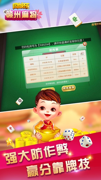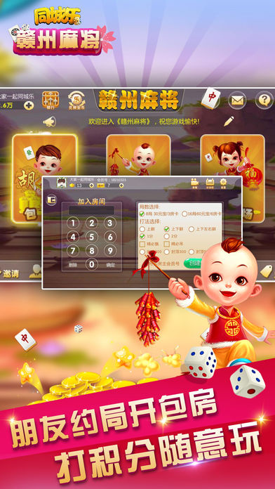 地道赣州麻将规则,新版上线,全新玩法。邀好友开设包房,一键直达包房,方便快捷,打积分随意畅玩。包房设有录像及回放功能,全程防作弊。每日大奖赛,签到领金币,万人在线陪你玩!