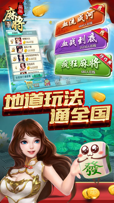 《陌陌麻将》是陌陌公司倾力打造的一款经典国粹麻将棋牌类游戏,中风古典风画面,真人实时对战玩法!陪您快乐生活每一天。能和周边的朋友一起打牌,能让您交友打牌两不误! 【获得荣誉】 陌陌推荐十大必备游戏,特色为能和附近的朋友一起打牌哟~ 【产品简介】 2015年超人气万人同时在线联网及单机棋牌游戏! 陌陌麻将集合了多种经典麻将玩法,让你一款游戏玩遍国粹精华。同时加入社交元素,排行榜、聊天功能,让你打牌的过程不再枯燥,是一款适合各类人群的休闲必备游戏。 【产品特点】 陌陌麻将:种类丰富的大众、血战、血流、二人、川麻等玩法,精准的胡牌种类和番型计算,让你High的根本停不下来! 陌陌麻将:日常任务,玩法任务,挑战任务,多种金币奖励,让你再也不用担心没有金币! 陌陌麻将:加入排行榜、聊天等社交元素,增加游戏趣味性。财富榜、魅力榜,让你想炫就炫! 官网地址:http://www.immomogame.com/mahjong