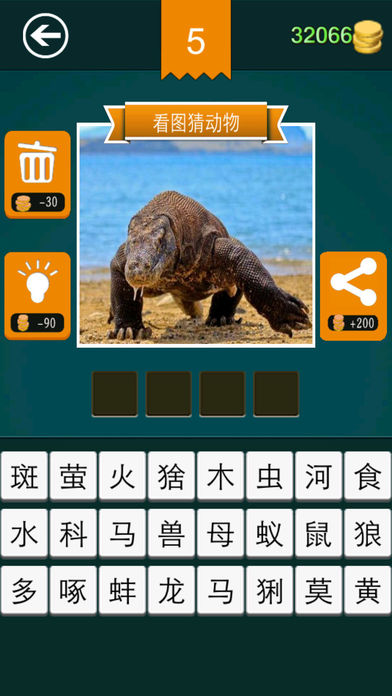 看图猜动物是一款老少皆宜的家庭休闲长知识的游戏。 大千世界,无奇不有。 天上飞的,地上爬的,水里游的,各种珍奇异兽你见过多少? 目前已知的动物种类大约有170万种之多,但濒临灭绝的种类也不少,变异生长的也不少,够你看个十天半个月的。 想知道你的生物知识到底到了什么程度吗? 来猜猜看吧,边玩游戏可以边长见识,何乐而不为, 必须准确地猜出本题目才能进入下一题哦…… 跟你的亲朋友好友一起来玩吧,比比看谁生物知识最丰富。 ---------------------------------------------------------------- 部分用户的好评摘录如下: 评论人:千里来客 - 版本: 1.3.0 - Jul 11, 2015 好好玩,每天都玩一下 评论人:崔XX - 版本: 1.3.0 - Jul 10, 2015 很喜欢玩这个游戏又学到了知识 评论人:806xxx - 版本: 1.3.0 - Jul 8, 2015 真心好玩,可以认识好多的小动物 评论人:懂大xxx - 版本: 1.3.0 - Jul 2, 2015 好玩,儿子喜欢 评论人:亲子xxxxx - 版本: 1.3.0 - Jun 28, 2015 不错'可促进亲子交流