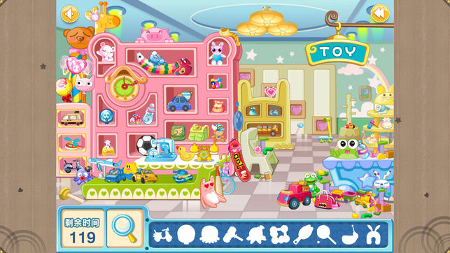 这是一款锻炼练孩子的寻找事物的仔细程度与记忆力的应用。和捉迷藏游戏一样,需要孩子非常仔细的寻找任何一个可能的位置。每个场景都会有数十个物品,求在规定的时间内,随机寻找10个物体。所以想要闯关成功,还需要孩子有非常好的记忆力。 但它比捉迷藏更难的是被寻找的物体只会给出轮廓图,孩子们需要通过轮廓图找到对应的物体。被寻找的物体有可能被放大或缩小,或经过一定角度的旋转,个别物体甚至会有一部份被其它物体遮挡,孩子们需要相当的认识能力才能找出对应的物体。 本应用也是一款非常棒的亲子游戏,推荐家长与孩子一起互动寻找过关(既便是成人也未必能找到所有物品哦)。游戏中有一个放大镜,带有自动查找功能,可以帮助寻…