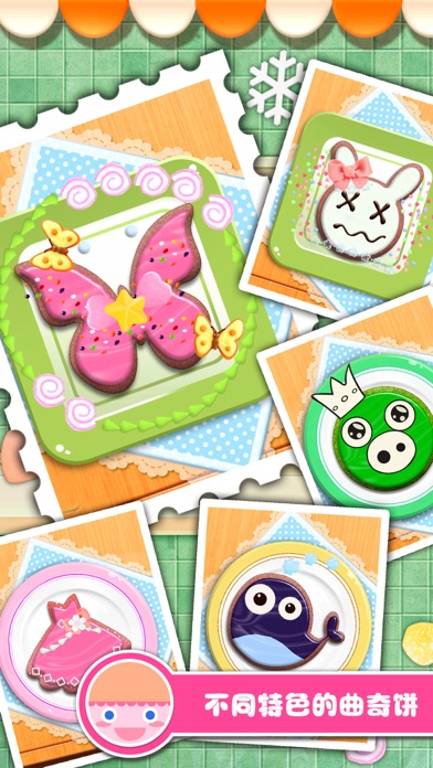 嗨,小朋友,这里是饼干乐园!你喜欢吃曲奇饼吗,有没有尝试自己做一款呢?赶快来曲奇饼手工沙龙尽情享受做饼干的乐趣吧! ^_^关注Libii官方微信公众号:libiigame 随时掌握最新游戏动态、活动资讯^_^ 可口的曲奇饼会让人心情愉悦,如果你亲手为爸爸妈妈做一次,他们肯定会感动不已吧,而且你也会超有成就感的!在真正动手之前,可以来我们的曲奇饼手工沙龙练练手哦。我们有8种口味可以选择,你偏爱哪一种呢?除此之外,饼干的形状和装饰很大程度上决定了其是否诱人,记得选择漂亮可爱的盘子、各式各样的奶油和糖果等来点缀一下呐!相信这款游戏会让你的手艺大有长进的。嘿嘿,赶快来大展身手吧! 游戏玩法 打开游戏,点击“Play”开始制作饼干。哇~这么多种口味呀!先滑动屏幕选择你最爱的一种,再把所有的材料都放进去吧!搅拌均匀之后,用擀面杖将面团铺展开来。好啦~现在可以选模具了!不过这么多,选哪个好呢?不要着急,一次可以选四个呢,滑动屏幕随意挑选吧。哈哈,用这些模具做出来的曲奇饼一定特别可爱。赶紧打开烤箱开始烘培吧!喔~注意烘焙的时间啊,不然饼干会烤焦或不熟的!呀,如此美味的曲奇饼怎么能缺少装饰物呢,各式各样的奶油、美味的糖果和漂亮的盘子等会让你的曲奇饼大放光彩,尽情发挥你的创造力吧!呼呼呼,饼干完成啦,这可是你的杰作哦,一定很美味可口哒!那么我们就开始吃吧,咱们别浪费食物,要在10秒内吃完哦!如果愿意,你也可以拍张照片然后点击“Contest”来参加比赛,说不定会成为我们的每周之星噢! 游戏特色: - 8种口味满足你的味蕾 - 15种模具让你的曲奇饼造型各异 - 海量装饰物随你选任你搭 - 尽享做饼干的无穷乐趣 - 与其他玩家一同挑战每周之星吧 关于我们: Libii Game一直致力于为孩子们打造寓教于乐并充满想象力的互动性游戏,而今已拥有超过两亿的下载量并且仍与日俱增。我们将不懈努力为他们创造出更多丰富有趣的内容。 更多产品资讯,请访问官方网站:www.libii.com 欢迎关注我们的官方微信公众号:libiigame 如需帮助,或者有任何想法、建议,请随时联系我们,邮箱地址:WeCare@libii.com 用户须知: 这个游戏的下载和使用完全免费,其中一些基本物品也可以免费使用,但是请注意,有一部分附加物品是需要您购买并付费之后才能解锁使用的,因此,如果您不想使用这类附加物品,也为了防止意外购买的纠纷,请您在设置中关闭购买应用软件这一项,谢谢您的配合。