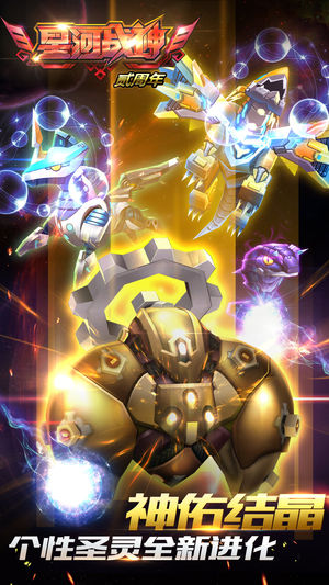 《星河战神》是全球首款3D机甲实时对战飞行射击手游。全3D震撼画面,同屏实时对战,尽享PK快感,多种游戏模式,酣畅淋漓,等你与好友战得痛快! 玩法特点: 1.首款公平竞技飞行射击手游,开启全民竞技手游新时代! 2.3D立体画面,极致影音享受,带来全新视觉冲击。 3.全新的属性相克系统,让游戏平添更多的策略与乐趣。 4.神话故事背景,人形生命机甲,挑战星河众神! 5.精心设计多变的关卡,丰富万千的装备,海量游戏内容等你体验。 6.创新实时PK玩法,让你与全世界玩家争夺星河最强王者! 7.更多内容即将到来,一同开启无限精彩的星河之旅! 故事简介: 在遥远的宇宙深处,有两个相隔亿万光…