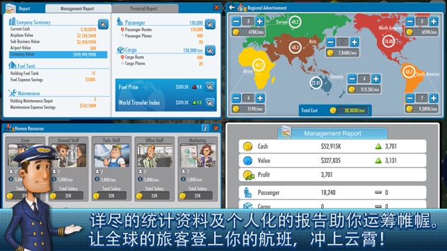 欢迎来到《航空大亨4》的世界! 权威的单人回合制航空管理模拟游戏,完整传承 受全球玩家青睐的《航空大亨Online2》的精华设计。 在詳盡的統計數據支援下建立及管理全球的航班 現在, 讓全球旅客準備乘搭您的航班, 衝上雲霄! 遊戲特色 : - 逼真、绚丽的3D画面 - 增加小游戏(着陆模拟) - 灵活自定义的回合制游戏 - 与最多24位电脑玩家同台竞技 - 丰富多样的游戏设定 - 由您操控遊戲內的 150 款真實飛機型號及全球 500 個機場 - 多元化的機場及航班管理 - 多種飛機及機場升級 - 購買及賣出已使用的飛機 - 詳盡及多款不同地圖選擇 - 掌管客運及貨運航班 - 遵從歷史的…