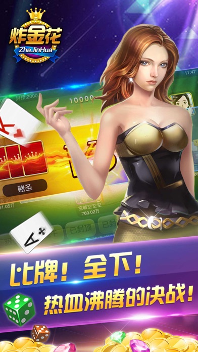 “嗨,美女,头像是你本人吗?” “必须的,姐的外号是美丽不打折!” “这么嚣张,有种玩三千万起看的吗?” “来呀,姐姐我最喜欢跟到底了。” “我是同花顺!天呀,这是真的吗?” “小子,算你狠,有本事别走,接着来。” “哥最喜欢与女子炸金花,其乐无穷啊。” “姐要来把豹子,让你输得找不到回家的路!” 扎金花是炸金花、诈金花、扎金花游戏的简称,超级紧张刺激,欢乐好玩的三张扑克牌游戏。 扎金花是公认的最受欢迎三张牌游戏。联网真人对战,汇聚各地高富帅白富美,高手云集,挑战您的胆略与智慧,赢了分享到QQ、微博、微信朋友圈炫耀炫耀,走自己的路,让别人羡慕嫉妒恨着吧。有别于斗地主、牛牛、德州扑克、麻将等其他扑克牌游戏,扎金花总是能带给玩家最欢乐最刺激的享受。 娱乐休闲、游戏交友两者的完美结合,就是这么酸爽。 iPhone、iPad上均可以玩得很嗨的扑克游戏,每天几万人参与。 已经完美兼容ios10,适配iphone7,iphone7 plus。 扎金花online在传统炸金花游戏的基础上做了大量创新: 1.普通房为传统玩法,偷鸡抓鸡其乐无穷; 2.欢乐房去掉2-6小牌,拿把大牌底气足; 3.百人房可容纳100人同局,欢乐热闹; 4.上传高清头像,相机拍照美图秀一秀; 5.支持单机练习和联网对战,天天嗨翻天; 6.界面清新操作简单,休闲放松的最佳选择; 冲击排行榜,圆你土豪梦。分享你的成绩到QQ,微博,微信上挑战你的好友。 别犹豫了,炸起来吧!