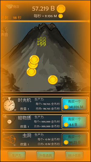 《点金术士》是一款放置类点击游戏。 这是一款小巧精致的游戏。有兴致的时候你可以点点它,体验一下满屏掉金币的畅快,累了的时候你把它放一边,它也会默默地为你生产金币,等你回来的时候又有很多金币让你购买生产力和升级道具了。它就是这样一款让你省心又能给你带来开心的小游戏,它的名字叫《点金术士》。不管你在地铁上,公交上,等人的时候……它都能给你的碎片时间带来欢乐。 游戏中,你置身于一座史前矿山之前,点击矿山即可生产出金币。使用金币可以购买各式各样的生产力和生产力提升道具。随着游戏的进行,你将拥有越来越高的产金能力,实现你内心的一个点石成金梦。还在等什么?一起来吧!…