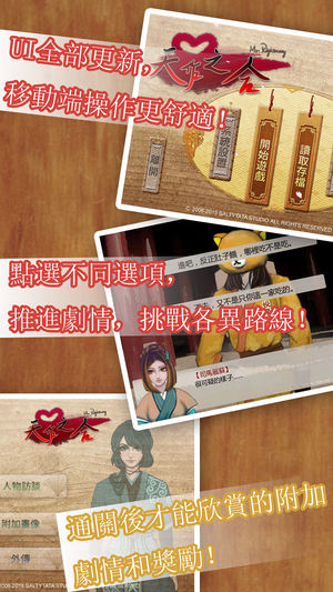 古风武侠乙女恋爱游戏, 快来与五位性格迥异的侠客展开轻松又槽点满满的恋爱冒险之旅吧! 全程中文语音,完全免费。 荣获巴哈姆特2015 ACG创作大赛游戏【佳作赏】! ■故事简介■ 自小在小言小黄书中摸爬滚打长大的女主——司马丽苏, 一直将大师兄兼表哥吴有为视为人生中“天作之合”的官配。 可是在她厚脸皮去表白时,却晴天遭到霹雳—— 有为表哥要结婚了,可新娘却显然不是她。 气在头上的司马丽苏,在婚礼上对有为表哥“小惩大诫”一番,而后便潜逃下山。 在逃亡的路上,她却似乎跌入了某著名连琐店的中奖陷阱之中。 是不是陷阱还不清楚。 只是那各种口味的“奖品”, 会给她带来真正的天作之合吗? ■女…