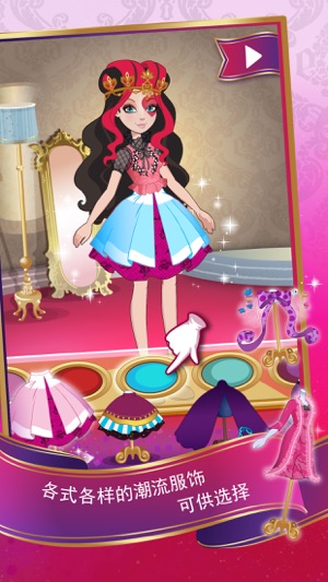 皇家学院和自由学院的同学们,还有世界上所有最漂亮的公主们,您们还在等什么!在这个全新的Ever After High装扮游戏里,童话故事的魔法,美轮美奂的时尚服饰,最时尚的妆容,还有更多精彩内容正在等着您! 享受打扮带来的前所未有的惊喜!成为所有王国中最优秀的造型师,替您最喜欢的Ever After High公主们梦幻大改造!为Apple,Raven,以及其他角色们挑选配搭鞋子,手袋,裙子,再配上完美的妆容,打造全新形象! 完成打扮后,拍下公主们崭新造型的照片,并储存到您的个人相册!让您的想像力驰骋飞翔吧!可能性是无限的!释放您内在的时尚潜能,帮助您最心爱的角色成为世界上最漂亮的公主!…