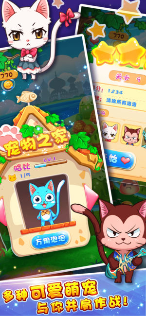 萌宠泡泡龙,萌萌的宠物,经典的打泡泡玩法,再加上晶莹剔透的果冻泡泡,一定会给你一种全新的游戏体验! 游戏种有五种不同的宠物,每种宠物分别有不同的技能,助你走出困境,拿到高分,另外连击也是一个拿高分的重要因素,心灵手巧的你必定连战连胜。 还在犹豫什么呢,带上萌宠一起打泡泡、PK、团战吧! 萌宠泡泡龙拥有以下特点: 1、多种可爱萌宠,与你一起并肩作战 2、数十种萌萌哒果冻泡泡,可爱到极致 3、近百个精心设计的关卡,让你玩个尽兴 4、亿万玩家与你同台竞技 萌宠泡泡龙玩家QQ群:385475974