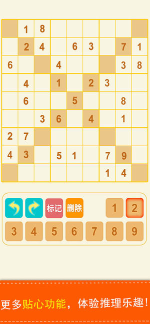 一款拥有几十年历史的数字益智游戏,5种宫格,适合各种水平,最接地气的数独游戏。 游戏特色: 四宫、六宫、九宫格,挑战你的极限,还有X数独和百分比数独~~~ 玩好数独游戏首先要了解它的特点、要求,然后要运用一些原则和技巧,福利送上: 1.利用排除法先填可以确定数字的行或列 2.优先填空格最少的行或列 3.当应用以上两个原则填好可以确定的和空格最少的行和列之后,其他行或列又有可以确定的数字,循环运用前两个原则填写空格。 运用此技巧基本上就是逐个填确定的数字,不需要去尝试可能性。答案只有一种,关键是找出突破口,在此祝大家好运吧。