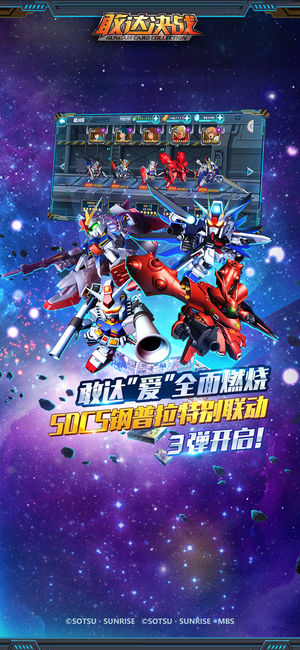 【游戏介绍】 敢达迷们翘首以盼,中国大陆首款正版授权敢达题材手游《敢达决战》正式上线! 《敢达决战》由株式会社万代南梦宫娱乐与DeNA中国联合打造发行,为中国大陆首款正版授权敢达题材手游,历代敢达机体机师大集结。殖民星争夺、星际远征、机师挑战,多种策略玩法,尽力为玩家还原一个真实而经典的敢达世界。每一台主战机体都有独特动作和酷炫大招,配合专属队长技合体技,弹指间逆转战场形势。升级进化,机师培养,打造一个游戏内的强力机动战士部队。 飞翔吧,敢达,向着银河飞翔吧! 【游戏特色】 •百台机体,经典人物悉数登场 •尊重原著,重温经典对话剧情 •触控释放,策略动作双重乐趣 •激光对射,导弹横飞热血…