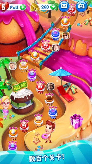 在这款疯狂三消冒险中消除甜点,你和你的朋友就是主角!进入一个色彩斑斓的世界,在这里街道用甜点铺就,而你则是最耀眼的烘焙师。一路消除,成为这块土地上最棒的烘焙师,满足好友对甜品的爱好。 关卡难度会不断增加,同时还提供消除和取胜的新方法。卡在某个关卡了?通过关卡求救功能,让好友帮你通关!完成数百个疯狂的关卡,摘取甜美的胜利果实吧! 主要特色: - 全新游戏方式:消除2x2个糖霜管,为顾客清出一条道路,找出藏在甜点下方的好友! - 在游戏中使用照片:将好友、家人甚至是宠物的照片添加到游戏中并分享,在这场疯狂蛋糕之旅中打造最耀眼的明星! - 专属乐趣:彩虹之星、会爆炸的蛋糕还有能制造糖果瀑布的糖…