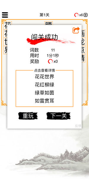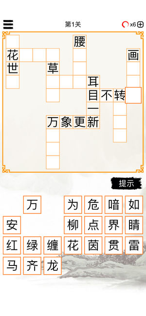 填字游戏与成语接龙的完美结合。 淡雅古典的界面设计。 游戏中的每一个词都有读音和详细解释。 多达300关,难度逐渐增加。 遇到难题也不怕,还有提示帮你忙。 随时分享到社交网络,用成语考一考你的朋友们。 内建问题反馈功能,我们一直在聆听您的意见建议。
