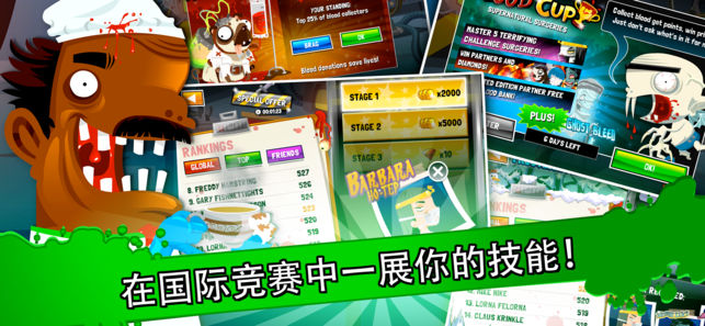 在业余外科医生游戏中利用家用工具为 100 多名患者施行手术:再生! 是时候拿起你可靠的披萨刀,开始做手术了! 业余手术先驱伊格纳修斯·流血医生从死里复活!在他周游世界寻找自己突然复活的答案时,帮助他解开解开谜团,,并沿途拯救一些不知情的生命。 *扮演医生的角色为 100 多位患者开刀和做手术! *为眼睛、大脑、心脏、肺、机器人、熊、巨型鱿鱼...等等施行手术! *招聘 30 多名具有别具一格的古怪特殊能力的伙伴! *采取高速外科手术完成实战医院生存模式! *与朋友比拼分数和成就! 疯狂外科医生 1 至 3 的经典关卡重新制作而成,工具升级换代,融入全新手术和独特剧情。 探索更多关…