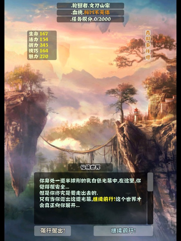 新浪微博:文刀山宗 主神空间系列独立游戏终于迎来了创世纪的第7作! ——前方高能,数千个小世界向你开放...—— 主7是一款允许玩家在手机上(含电脑)快速设计并公开发布(含加密发布)的文字游戏快速开发平台。详细图文教程见贴吧,公众号或群共享(任意类型的文字游戏,包括无限流,RPG,养成,模拟经营,解谜,甚至ASCII棋~一切取决于你的脑洞深度)。 玩家(创世者)可以用游戏各种内置的编辑功能设计自己的文字世界,然后可以开放给其它玩家进行探索。你可以在主7内置的世界编辑器里设置各种道具和称号,以及主支线的跳转,各种成功通关或失败的条件设置等。 【探索者】:不想创世这么麻烦的玩家可以直接在游戏界面选择‘探索者’,去其它玩家创建好的世界进行游戏探索,或者进入顶部的‘不想创世?点这里’。 【创世者】:创建可供其它玩家进入的带有强烈个人特色的世界。操作详情于游戏内有具体的帮助,或者直接进入官方群讨论请教。 创世者们还可以为自己的世界设置进入条件,比如无限制开放,绝对禁入,或者密码进入等。 创世者们还可以根据排行榜查看到当前人气最高的前一百个世界! *****创世模式分两类共3种***** 第一类,仅73个事件id的基本模式:故事模式(含一主线和一支线)和命运模式(随机向前推进事件)。 第二类,拥有无限事件id(无限主/支线)的超级模式,该模式下的每个事件均可独立挂载3个单选项,且可为选项们添加独立的属性判断准入条件(有脑洞一切皆有可能)!每个事件可独立实现对四大属性的变动(可加减浮动或直接归零)!每个事件可独立实现对所有道具和称号的更改变动! 如果这样形容主7的超级模式,应该更直观…… 只要你拥有足够的耐心和创意,你完全可以在主7中再造一个主神空间4! 需要特别说明的是!所有创世相关的设计功能全部免费开放,绝无内购解锁之类的坑x行为! 无论你是扩散还是打赏,欢迎各种支持! *****除了创世以外,主7还提供了其他轻松的休闲玩法***** 登录游戏后的界面上方可以看到一个名为(不想创世点这里)的按钮。 里面将是更加轻松的玩法: 红尘迷梦,所有玩家都可以上传各种有趣的剧情事件,然后所有进入其中的玩家都有可能会遇到自己或他人上传的这些事件,同时事件可以造成生命或财富值的变化 ,这些都可以自行设定。同时也提供了一个坚持最长回合的榜单。 画风陡变,这是一个相对更发散的主神空间,玩家可以选择不同的世界去上传各种有趣的剧情事件,同时可由玩家自行设定该事件可能带来的五大属性变化。然后玩家进入其中也将有可能遇到自己或小伙伴设计的事件。 ——攻略,建议,游戏交流相关联系方式—— 百度贴吧:主神空间 微信公众号:文刀山宗【回复:主7】 官方Q群:298684715