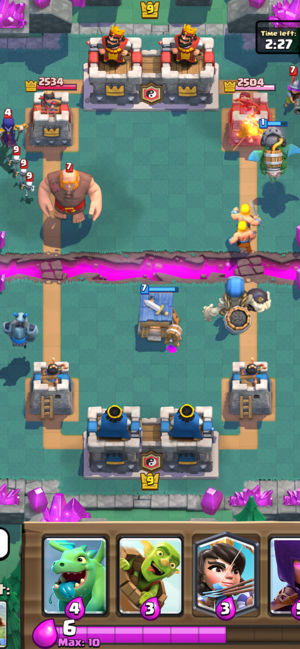 《皇室战争》是由芬兰知名游戏公司“超级细胞”(Supercell)推出,以《部落冲突》的角色和世界观为原型,加入即时策略、MOBA以及卡牌等多种元素的休闲对战手游。《皇室战争》凭借其独创玩法在全球范围内大受欢迎,游戏简单易上手,同时蕴含着多种丰富的策略,分秒必争的战局将给您带来源源不绝的刺激体验! 请注意!《皇室战争》是一款免费游戏,但您也可以使用真实货币购买一些游戏道具。如果您不想使用该功能,请在设备的设置中禁用应用内购买。此外,根据我们的《服务条款》和《隐私政策》,您必须年满13周岁才能下载或体验《皇室战争》。 • 多种强力卡牌,玩转深度策略 不管是憨态可掬的飞龙宝宝、英气逼…