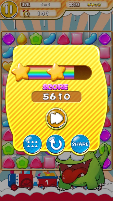Switch and match your way through many of levels in this delicious puzzle adventure. Tasty candy graphics that will leave you hungry for more. Complete adventurous levels and unlock treats Easy and fun to play, challenging to master.
