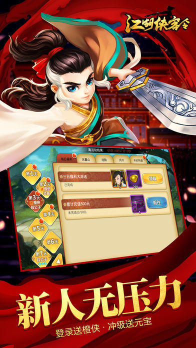 《江湖侠客令》是一款集闯关、养成、策略、奇遇、对战等多种玩法于一身,满足玩家对武侠世界向往的精品RPG武侠卡牌手游。 您将在游戏中扮演一位盖世豪侠,邂逅江湖各路群豪,修习各派武学神功,携神兵行走江湖,酒馆相聚知遇天下英豪;挑战南峰北窟,收集真气突破经脉;关外激战,宝箱遍地资源无限;摩诃悟道,策略至上趣味无穷;武林大会群豪争霸,巅峰对决一战成名;帮派玩法,告别江湖孤寂,更有伙伴助阵玩法助你战力飙升。群侠时代自此开始,你的江湖,你的世界。 【特色玩法】 【镖行天下,跨服劫镖】 最新跨服押镖玩法,群侠四起跨服劫镖,运送镖车赢取丰厚排名奖励,更有武林公敌击杀玩法惊喜开启,群侠齐聚合力击杀行侠仗义。 【组队跨服,PK对决】 最新PVP玩法,精彩火爆的实时对决,三人组队,王者擂台,谁能笑傲江湖,横扫巅峰武者的荣耀战场。 【排兵布阵,指尖大招】 游戏为横版战斗实时操作,指尖点击施放技能大招,见招拆招,点击之间一击致命,排兵布阵策略无穷,全新战斗模式为您带来前所未有卡牌手游战斗体验! 【造型Q萌,场景精美】 游戏内将会陆续推出数百名江湖名侠任您挑选,骨骼动画飘逸洒脱,技能绚丽特效醉人,一动一静彰显宗师风范;游戏场景美轮美奂,梦幻夜景昼夜交替,为您呈现出不一样的武侠江湖。 【武林大会,以武会友】 周六周日游戏内将会开启武林大会玩法,召集天下群雄以武会友,战趣无穷,八强玩家将参与全民争霸赛,巅峰对决争夺武林至尊(盟主),更有丰厚奖励等你来拿! 【江湖福利,豪礼放送】 福利大放送,开服七日狂欢活动拿豪礼,登陆第二天,神品装备赠送,三日登陆更可以结义高品阶传说侠客“段公子”,七日登陆,天天好礼;首充6元即可获取“神级治疗”侠客一同闯荡江湖,惊爆福利让你HIGH到爆! 【结义名侠,自主养成】 江湖名侠悉数登场,酒馆招募与群侠结义共闯江湖,各种武学神功千变万化,战斗阵型即时变换,百余侠客尽显江湖奇缘,激活缘分飙升战力,百余种武学BUFF相生相克,策略战斗指尖胜负。 【神兵绝学,任你所用】 神兵利器任你所用,海量资源应有尽有,装备精炼、宝石镶嵌、重铸玩法助你战力提升;集天下绝世武学,习成名绝技,武学修炼,百尺竿头更进一步,群侠论剑谁与争锋! 【自成一派,逐鹿江湖】 全新帮派玩法来袭,聚义大厅集结群雄创建帮派,忠义堂歃血为盟再现热血豪情,珍宝阁帮贡兑换奇珍异宝,后山闯关共促帮派繁荣,更有修炼场助你战力精进,修炼更进一步。 【联系我们】 如果您在游戏中遇到任何问题,或是想要提供宝贵的游戏建议,可与我们的客服人员取得联系! 您的专属客服QQ:800075156 您的专属客服电话:4000006521 官方微信号:jyqxz2015
