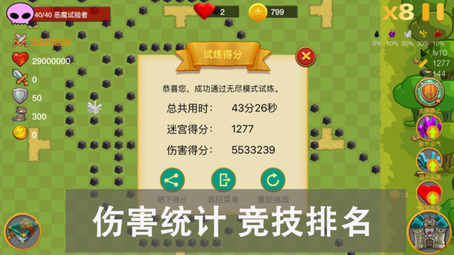 版本: 正式版 游戏介绍: 宝石塔防与一般的塔防游戏不同,宝石塔防的地图是极其开放和自由的,玩家需要不断规划和建造迷宫,来延缓一波波冲击堡垒的怪物们的进军速度。精心规划的火力点也十分必要。依靠不同宝石组合的强大攻击能力,消灭“请君入瓮”的怪物们,成功守卫你的堡垒吧。 游戏中每波放置5颗随机宝石,需要你来决定留下哪一颗,每次选择都至关重要,这都将影响后面的发展轨迹,这里需要运气,更需要策略、智慧和眼光。 每4波,就会出现一批飞行怪物,它们将忽略你的迷宫,这绝对是对你防空火力的一大考验,可千万别只顾着摆迷宫而忽视了宝石升级与合成,否则你将后悔莫…