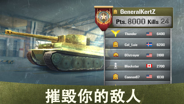 为你的荣誉而战!立即加入火遍大江南北的史诗级在线多玩家的坦克大战。 与你的队友一同实施完美的战略,抗衡世界各地指挥官的军团。盟友的命运就掌握在你手中。立即免费下载有史以来最出色的坦克游戏吧! 快节奏的多人战斗游戏 3分钟!在这款完全为移动设备设计的均衡坦克游戏中,你要在这段时间内尽量击垮更多坦克。 悍卫祖国 悍卫祖国荣誉,防止敌人破坏。与来自中国、美国、俄罗斯、日本等国的玩家一较高下。 两种爆炸性的模式 进行团队战役,或自由战斗。 来自全球各地的标志性坦克 根据你的战略, 从一系列强力怪兽之中选择合适的坦克。选择一辆轻型坦克,方便快速探查敌境,为你的团队战役提供瞬息万变的情报。或者选取…