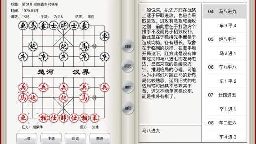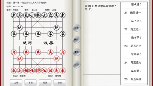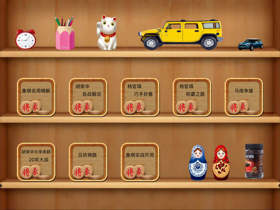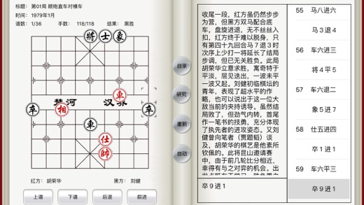 象棋名局精解包括iMac/iPad/iPhone三个版本。所有棋谱包括详细注释。 象棋名局精解提供免费版,欢迎下载。 (1)象棋名局精解 贾题韬 著 共036谱 (2)胡荣华自战解说 胡荣华 著 共124谱 (3)杨官璘巧手妙着 共147谱 (4)杨官璘称霸之路 共106谱 (5)马炮争雄 黄少龙 注释 共121谱 (6)胡荣华与李来群20年大战 共094谱 (7)吕钦棋路详注完全版 共175谱 (8)象棋实战开局 傅宝胜 注释 共130谱