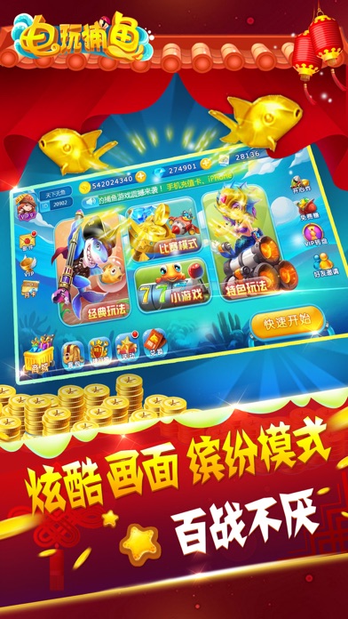 ◆2017年全新捕鱼手游《电玩捕鱼》,震撼上线!赞!赞!赞!◆ ■App Store五星推荐,捕鱼游戏中唯一全五星好评,值得拥有! ■唯一一款全联网捕鱼,完美移植街机厅!如同身临其境! ■3D酷炫比赛场,尊享竞技之王,更有神秘大奖等你来赢。 ■街机游戏的不老神话,带你完爆所有捕鱼游戏 特色介绍: @比赛:首创比赛模式,万人同时竞技。还有超多道具助你赢得大奖! @VIP:专属勋章标示,签到、在线奖励双倍拿 @炮台:青铜勇士,重装守卫,晶蓝之力,绯红之火,黄金龙炮,酷炫到没朋友 @玩法:炸弹,超强轰炸;一网打尽,全屏追捕;能量圈,双倍收益,超强的重炮打击感 @抽奖:完全免费你敢信?海量福利送不停 @界面:美轮美奂的海底美景,清新唯美的UI界面 @音效:3D环绕杜比音效,让您身临其境,捕鱼爽翻天 ◆还在等什么,快来与我一起加入2017年最新!最酷!最好玩的捕鱼游戏吧◆ =2017年度最受欢迎的捕鱼游戏—《电玩捕鱼》全新上线!= 捕鱼变态版:最高10万倍奖励,更刺激!** 全新电玩街机神还原:勇斗蟹将军,三战龙太子,大脑龙王宫,等汇集当前所有街机捕鱼版本!让你 足不出户,享受指尖街机捕鱼之乐! =游戏特色= 自创技能,轻松秒杀BOSS鱼:极限锁定--锁定BOSS;自动射击--解放双手;急速射击--狂轰乱炸;定 屏捕鱼--万炮齐秒杀BOSS不再是梦。 子弹反弹,弹无虚发:子弹射出后可以反弹,子弹不落空,不会浪费金币。 多种场景的融合:勇斗蟹将军,三战龙太子,大脑龙王宫等经典捕鱼版本完美享受指尖乐趣。 神秘奖励,无上限大奖送不停:在捕鱼中更会有神秘场景,可领取无限大礼