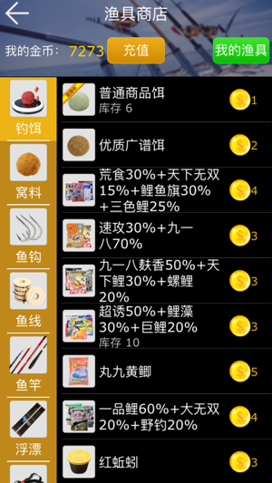 高度仿真鲫鱼、鲤鱼等淡水鱼类咬钩时的浮漂动作,真实模拟野塘、水库、黑坑等钓场中鱼吃饵时的浮漂运动过程,方便广大钓友(特别是钓鱼发烧友)足不出户就能体验台钓的快乐! 游戏高度还原钓鱼过程,打窝调漂,选位下竿,竿线漂钩,合理搭配,逼真的体感晃动抛竿模式使得钓鱼过程更逼真,更过瘾! 游戏支持夜钓模式,支持钓鱼比赛模式,支持赌塘模式,让您身临其境,体会提竿刺鱼的快感,感受手竿搏大物的刺激,满足连竿爆护的梦想! 和钓友来一场有趣而激烈的斗鱼竞技比赛吧!