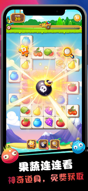 果蔬连连看是经典连连看游戏的最新续作! 游戏特色: 1.清新、亮丽、舒适、可爱的画风,水果萌萌哒! 2.传承电脑版连连看的经典模式加以创新。 3.五大模式带来各种不同体验。 4.精致关卡多达800多关。 5.丰富的道具免费使用。 五大模式: 1.经典模式,经典传统的玩法,向历史致敬! 2.争分夺秒,生死急速,坚持到最后的都是英雄。 3.无限模式,挑战连连看终级王者! 4.梦魇模式,刺激有趣,好玩到爆。 5.消消乐模式,让你舒缓身心,简单快乐游戏。 Game Center支持 1.游戏排行榜让你和全球好友一起竞技。 2.你可以看到自己玩连连看的水平在全球的排名。 这是一款经典免费的连…
