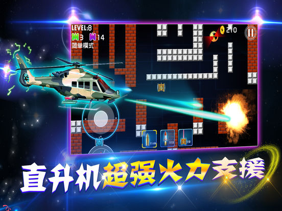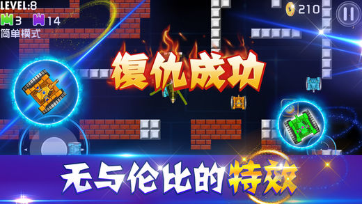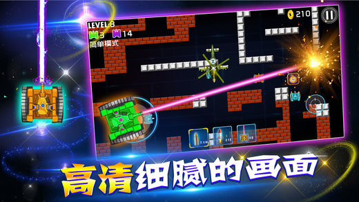 原价18元的坦克大战最后一天免费促销,千万不要错过机会! 2013年TCGame推出了坦克大战极速版,一经上线就冲入AppStore中国区总榜第二名,深受广大玩家欢迎。如今4年过去了,TCGame再次推出坦克大战的豪华升级版,曾经的小米步枪如今更换成了大杀器核弹头,激光制导的火箭,这次绝对不会让你失望。 本游戏具备更加细腻高清的画面,更加炫爆的特效,更加让你心思澎湃的连环射击,只在今天,你将得到有史以来最好玩最劲爆的坦克大战。 游戏特效: 1.由最顶尖的工程师采用最新的游戏引擎打造的虚拟按键,让你能体验到如同次世代手柄一般的畅快自如。 2.各种特效,各种核武器,大杀器,能让你深深的爱上,不能自拔。 3.流畅高清的画面。