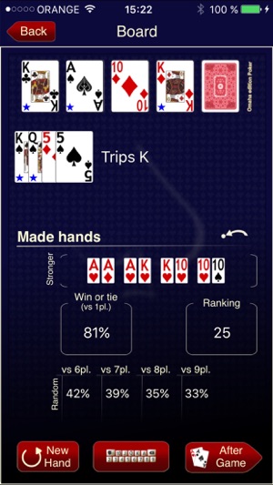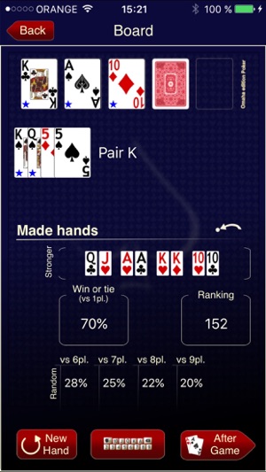 Omaha % is an elegant and powerful odds calculator for Poker Omaha HIGH, based on the same pattern as the famous Poker % for Texas Hold'em games. Thanks to its user-friendly interface, including speech recognition capabilities, it can be used while playing on line. ------------------------ Core f…
