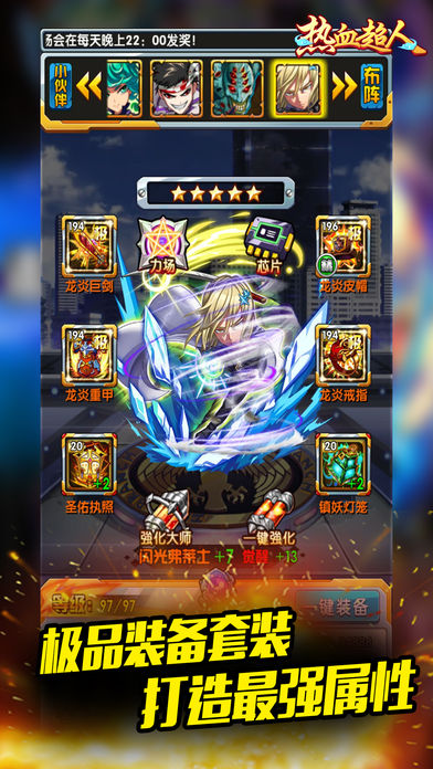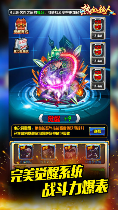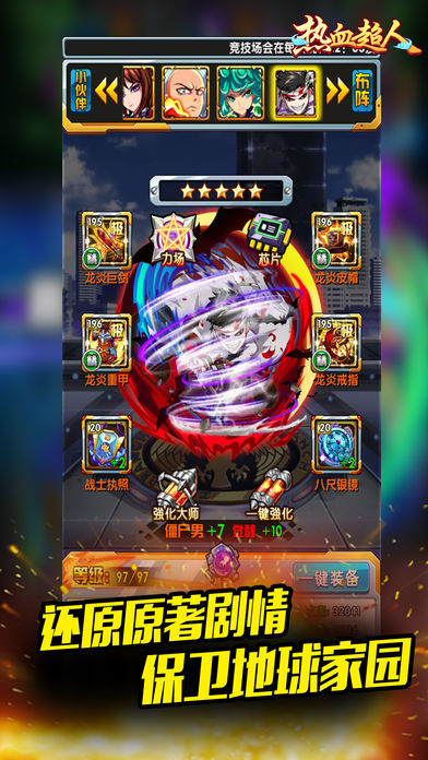 《热血超人》源自日本著名漫画,人物角色和场景百分百还原动漫剧情的手游大作。游戏讲述了原本是一名普通人的光头埼玉,为了追寻自己想要成为英雄的梦想,通过加入英雄协会拼命锻炼和晋级,终于脱胎换骨获得了最强的力量,与众多英雄一起开始了对抗各种怪人以及灾难的生活。战斗全场震屏大招、轻松一拳通关;游戏场景通过3D分镜技术,实现空中俯瞰整个战斗,一种全新的视觉体验;再加上著名CV百分百还原动漫配音,游戏操作轻松、玩法多样、 轻快流畅,满心欢喜邀你前来体验! ----------游戏特色---------- 1、原味动漫,正统还原动漫手游 2、英雄收集,搭配超强组合战队 3、超强怪人,紧张刺激的怪物挑战 4、一拳必杀,酣畅淋漓的炫酷对战 5、上帝视角,身临其境的3D对战体验
