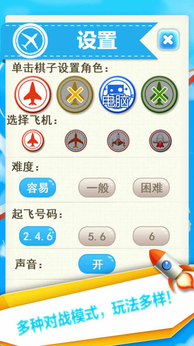 什么游戏最好玩?我告诉你,飞行棋!想飞就飞,想跳就跳,想撞就撞,一不留神,还可以连飞或者连跳,像超人一样强大,当然运气不好 的话,也会被一下撞回原点。不过没关系,从头再来,展现你强大的耐心和毅力,哈哈,运气好不好还得看看人品值,快来试试吧。 游戏模式: -飞行棋: 起飞规则:只有在掷得设定点数后,方可起飞;跳跃规则:当飞至与自身同色方块,可直接跳跃至下一同色方块中;撞机规则:当飞至某方块已有敌机停留,可将敌机撞回停机坪。仔细研究趣味无穷。 - 拖 动:将下方的三个备选方块拖入宫格中,一行或一列铺满即可消除 - 六边形:全方位消除,只要是铺满整行都可消除 - 消 除:过关玩法,点击相同颜色的方块即可消除 -见缝插针:将下方的数字小球发射到旋转齿轮上,并在此过程中没有碰触到其它小球即算成功过关 - 转转消消乐:匹配同色齿轮,将小球射入即可。
