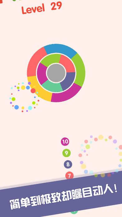 很简单的一款游戏,但是又会让你停不下来,见缝插针,夹缝求生存之最高境界。只需要将小球射入盘中,并且不碰到其它 小球就可以,如此反复,直到小球用完,那么你就胜利了。超级简单,但也会越来越难,挑战你的耐性和毅力,赶快来试试把。 游戏模式: 1. 见缝插针:看准再插哦,轻触屏幕,像扔飞镖一样将数字小球发射到旋转齿轮上,直到小球全部用完,并且不能碰到其他小球即算成功过关。 2. 转转消消乐:对比旋转齿轮和数字小球的颜色,发射小球到同色齿轮就可以消除啦,千万不要手抖哦。 3.多牛百变方块拖动:将屏幕下方的三个备选方块拖入方块宫格中,一行或一列铺满即可消除 4.多牛百变方块六边形:六边形玩法打破了传统的俄罗斯方块消除方式,也是拖动模式的六边形消除增强版,上下左右,只要是整行都可消除 5.解绳子:如果转转消消乐玩得比较乏,就静下心来解解绳子吧,使所有线段都不相交即可过关哦 6.下一百层:风靡全球的休闲闯关游戏也被我们融合进来啦 7.下落:与俄罗斯方块的玩法相同,消除的行数越多,得分越高 8.多牛百变方块坠落:这个是俄罗斯方块的变形体,不同的是可使用1010方块宫格旁边的左右键控制方块颜色,3个及以上相同颜色的方块叠在一起即可消除。方块累计26行时游戏结束。 9.多牛百变方块消除:过关玩法,在剩余方块数用完之前消除所有捆绑的方块即可过关,使用1010方块宫格旁边的四个键控制俄罗斯方块的下落,四个相同颜色的方块叠在一起即可消除。 10.穿针引线:天机不可泄,自己琢磨啦