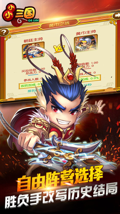 游戏简介: 全球竞技,跨海征战,《小小三国》周年新版“跨海阵营战”震撼来袭,全球玩家以自己所在的国家或地区为同一阵营,通过阵营战玩法在线竞技,强强对决,角逐巅峰,这是真正的问鼎天下之战!还有家族领地、家族守护兽、军团组队副本等众多全新内容同步登场。全新的玩法,不变的热血,让我们一起开创属于自己的巅峰盛世。 新版特色: 【跨海阵营战】 《小小三国》全球玩家以自己所在的国家或地区为同一阵营,通过阵营战玩法在线竞技,中国大陆、港澳台、新加坡、马来西亚、泰国、日本等众多国家或地区的玩家都会投身战斗,跨海征战! 【家族领地玩法】 当家族达到一定规模时,将会获得一片领地,开启众多家族领地特色玩法。 【家族守护兽】 各种家族守护兽,由家族成员共同喂养,每一种都会带给成员独特的好处。 【军团组队副本】 由5个玩家各出一个军团,组成团队进入副本探险。副本采用爬塔通关制,打过关卡越多,奖励越丰富。 官网:http://xxsg.ay99.net/ 客服QQ:1691741155 玩家交流群:374771657 客服电话:0795-3666681 贴吧:小小三国ol吧 http://tieba.baidu.com/f?kw=%D0%A1%D0%A1%C8%FD%B9%FAol&fr=index