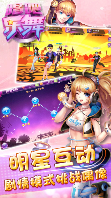 3D 音乐巨作《唱吧乐舞》正式开启! 《唱吧乐舞》是一款满足你交友和游戏两不误的时尚音乐舞蹈手游。音乐激情四射,舞步逼真动感,带给你全新的音乐舞蹈游戏体验。抛开繁琐的手机键盘,独创音乐聊天交友,真人语音,让你找到心爱的Ta。 【社交完整场景酷炫】 《唱吧乐舞》是一款融合了社交,时尚,竞技,休闲等元素的3D音舞类社交手游。酷炫的场景,精致的人物,新潮的服饰,拥有堪比PC游戏的视觉效果。 【创新玩法明星互动】 不同与其他的音舞类游戏,在这里玩家可以勇闯明星之路,与明星BOSS一起互动挑战。游戏独创了明星之路挑战,玩家可以PK众多当红明星,全三星闯关成功,更有惊喜钻石大礼掉落。 【斗舞派对传承超越】 斗舞派对传承了经典的劲舞团模式,并结合游戏主推的原创泡泡抢擂玩法,指尖竞技,胜点角逐,劲爆全场。超完美打击律动需要更多道具相助! 【画面清新活动不断】 整款游戏画面简洁清新,3D人物和场景细腻,更有海量DIY服饰和前沿歌曲,魅力语音互动。采用特色玩法“泡泡模式”,可玩性极高。社交体系完备,商城、背包、好友、舞团、聊天、抽奖、星许愿系统各局特色。 现在下载登陆游戏还可免费领取新手大礼包! 游戏特色: 1.特色创新按键模式,规范细的布键规则和动感的音乐节奏完美衔接 2.颠覆传统竞技玩法,打破传统音舞游戏分数定胜负的模式,而采用擂主胜点角逐的模式,更加刺激,更加劲爆! 3.角色时尚魅力成长,弱化角色等级这个概念,让玩家有了更多真实意义上的社区成长追求,同时还会带给自己跳舞竞技实力一定的帮助哦! 4.游戏多样化的社交体系,玩家可以通过各种手段寻找好友,添加好友,赠送礼物,好友间还可通过邀请跳舞等功能让友情升华为爱情。 5.《唱吧乐舞》全新的3D视觉动感画面,时尚潮流的靓丽人物,炫酷多彩的舞蹈场景,全新对抗的按键玩法,萌萌哒的清新引导故事带给玩家完全与众不同的音乐游戏体验。 巧妙独特的人物成长系统,让玩家感受身临其境的现实社区,时尚与魅力的双重追求与养成,对抗刺激,节奏强烈的抢擂玩法! 赶快加入梦幻的音舞交友世界吧!!
