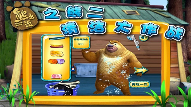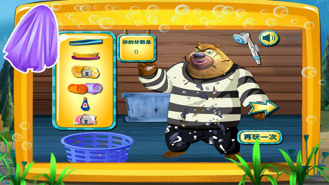 熊大和熊二终于忍受不住自己的又脏又臭了,他们今天准备大搞清洁,不过他们忘了清洁工具放到哪里去了,你帮帮他们找到他们想要的清洁工具吧! 然后再帮他们一起完成这场清洁大作战吧!