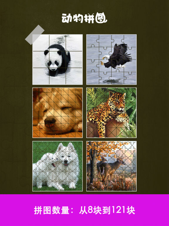 一款美轮美奂的动物拼图,拥有大量的动物图片和关卡供你来选择和挑战。 不仅考验自己的眼力和智慧,更可以认识不同的可爱动物。 图片更可以收藏,自定义数量和形状,挑战更快的速度,完成拼图。 赶快来与动物朋友们一起玩耍吧。 特性: 1. 超多的关卡,充满挑战 2. 多种可爱动物图片可供选择 3. 拼图成功的图片可以收藏 4. 多种形状的碎片,增加娱乐性 5. 多种道具帮助你轻松完成挑战