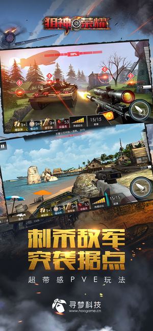 "移动设备上最成功的狙击游戏之一"《kill shot》正统续作 超200个任务供你挑战,消除敌对势力维护世界和平 百种世界名枪云集,最新军事装备自由选择 超逼真战场还原,击杀慢镜带来强烈视觉冲击 真人PVP公平对决,上演惊魂生死狙击 游戏简介 《狙神荣耀》是由Hothead Games打造,猎豹移动及寻梦游戏联合发行的狙击竞技手游,玩家在游戏中将化身特种部队队员,运用先进的武器装备深入敌后,与敌人进行生死大战。游戏较前代产品相比,大幅度提高了画面质量,武器数量以及真人PK体验。 游戏特色 【最强FPS手游来袭】 极真实的3D图像让你置身原始森林,现代都市,荒野沙漠进行反恐战斗 与超…