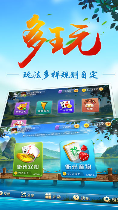 = = = = = = = = = 衢 州 人 专 属 棋 牌 游 戏= = = = = = = = = 想要牌友想有圈,打牌就来牌友圈。 衢州人专属牌友圈,还差你一个! 杭州边锋倾力打造《牌友圈》,专为衢州人设计,玩法丰富,操作简单,随时随地,想约就约!柯城、衢江、江山、龙游、常山、开化等地的牌友们,一起开心搞起! = = = = = = = = = = = = = 游 戏 特 色 = = = = = = = = = = = = 【规则自定】便捷的牌局开房,规则自主选择 【好友约战】快速地房间组局,队友提前组队 【本地玩法】多样的游戏玩法,经典的双扣规则 【超优体验】精致的游戏界面,公平的游戏环境 = = = = = = = = = = = = = 联 系 我 们 = = = = = = = = = = = = 在线客服:关注微信服务号【边锋牌友圈】 微信客服:paiyouquan100 24小时人工客服热线:4007202233 商务合作:联系邮箱 yechenlin@bianfeng.com