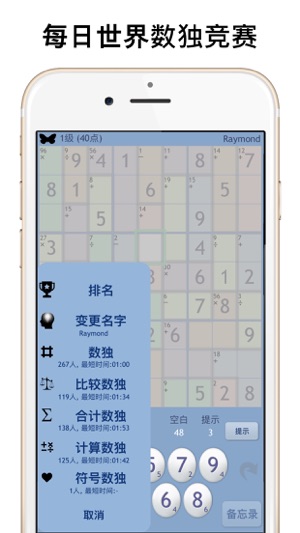 世界上最好的数独游戏iPhone/iPad的。 它提供了易用性和几乎所有的功能,你可以想像。 它提供了无限的困惑,让您可以享受新的游戏,为你的生活。 每一天的世界数独竞争的 功能 - 5型的数独游戏 原来的数独 大于数独 杀手数独 计算数独 符号数独 - 每日数独 - Facebook/Twitter连锁 在Facebook分享记录 在Facebook分享拼图 在Twitter分享记录 在Twitter分享拼图 - 重新开始, 看重播 - 各个等级提供了无限的难题。 和只提供100个,1000个游戏的APP不一样。“数独9”提供了无数的难题,你可以一辈子享受这个游戏。…
