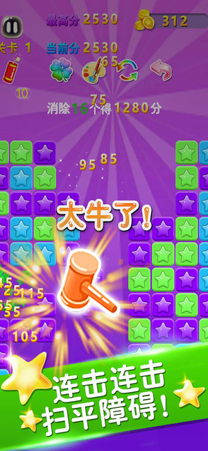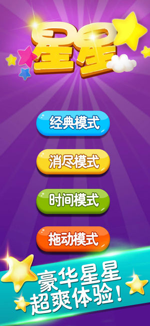 五彩缤纷的界面给你身临其境般的星星体验,5种模式涵盖经典和创新,让你欲罢不能! 【游戏模式】 星连星模式: 连接2个颜色相同的星星,让连线和星星布满全局即可通关。 经典模式: 点击两个或更多相同颜色的星星即可消除,没有时间限制,但每一关都有目标分数,达到目标分数就能进入下一关卡。如果过关前剩余星星数量少于10,还将获得额外奖励。 消尽模式: 包含三色模式、四色模式、递增模式。玩法与经典模式相同,不同的是需要将所有的星星消完才可进入下一关,爆竹小道具可助你一臂之力。 时间模式: 60s争分夺秒,玩转星星。想看看你在这短短的时间里,最高能获得多少分呢?排行榜里是否会留下你的名字?…