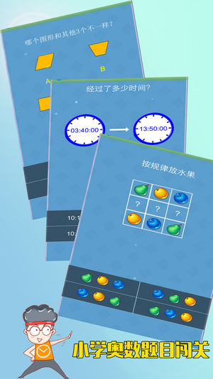 数学冒险王是趣味数学游戏大集合,激发中小学生对数学的兴趣,也适合工作之余锻炼大脑。 游戏以数学思维训练为目的,根据简单入手趣味第一的原则,设计出三个板块: 1. 速算迷宫,加减乘除逻辑推理地图,速算盒子超有挑战性。 2. 学霸挑战赛,简单题目不简单,游戏难度:抓狂。 3. 奥数王之战,将小学奥数题目变成游戏, 以下是一些有趣主题: 数数水果,简单加减法,几何图形找不同,最大数,最小数,递增递减数列,水果排序,大于还是小于,找规律,估算(四舍五入),水果篮子,等式判断,立方体个数,数字的规律,黑白块儿,数字气球,两个等式,时间时钟问题,买卖问题,儿童数学游戏,数学游戏,长链计算式,逻辑推理训…