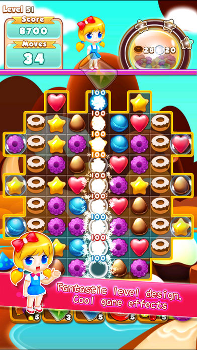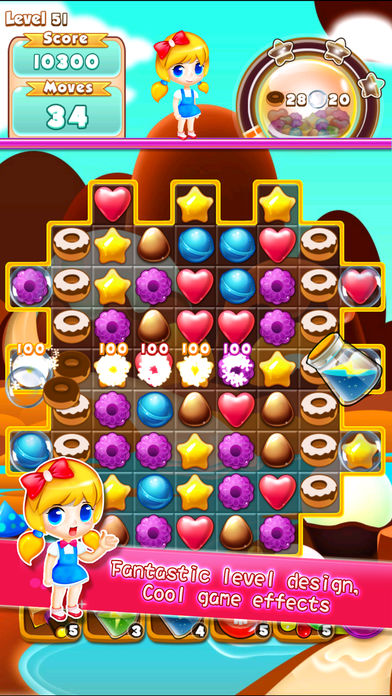 糖果消消乐,一款极具吸引力的三消对对碰消除游戏,一旦开始,难以放下! 首次进入游戏即可获得100个钻石奖励! 富有挑战性的闯关地图、梦幻甜美的糖果风格、丰富趣味的音效! 爽快流畅的手感,以及独创的微策略消除玩法,带给玩家最高品质的休闲互动体验! 上百个经过精心平衡过难度和趣味性的关卡,并且升级不断! 游戏特色: 1.不花任何费用轻松通关 2.爽快的指尖滑动、可爱的爆萌画风 3.奇妙的关卡设计让你享受极致的体验和消除的魅力
