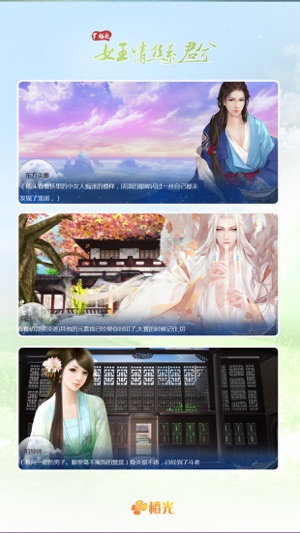 【游戏公告】 上周由于服务器供应商出现问题(已修复),可能导致游戏不稳定,在此期间充值的请多等待,游戏问题请联系我们的客服,对您带来的不便,我们表示由衷的歉意。 客服QQ:800066931 只有自己强大,才能不让爱人受伤。 是否失忆,你都是命中缘定的那个她。 【游戏简介】 原本以为一切都结束了,没想到醒来之后,再次来到一个陌生的世界,斗气师?魔兽?神器? 在这个陌生的地方女主是否能够闯出一片天地呢?听说只要到达帝斗师或是仙尊巅峰,就能 回到南凤国,云殇,萧玉,媚漓,玉竹,渊儿。。。我是否还能再见你们? 【游戏元素】 古风,奇幻,爱情,恋爱,穿越,言情,女尊,曲折,感动,架空,记忆…