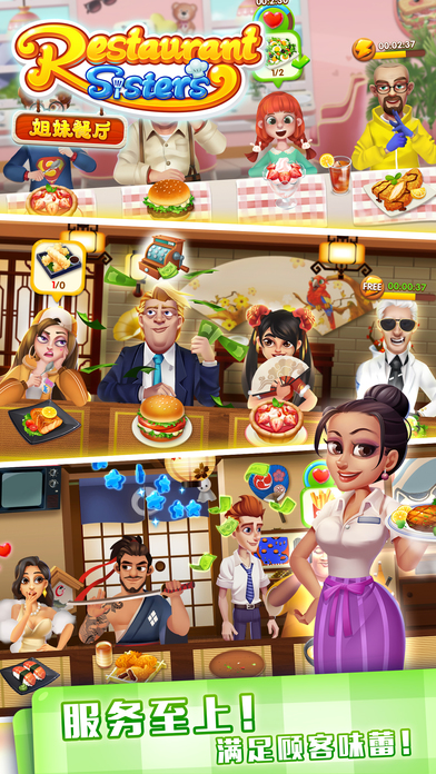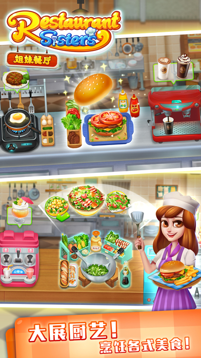 破产姐妹在好心人的帮助下拥有了一家汉堡餐厅,快来帮助她们吧,千万别再搞破产啰! 餐厅,厨房,身临其境!欢迎你,我们的大老板,这是完完全全属于你的餐厅。 你将有机会亲手制作最流行热门的美食,建造全世界最豪华最强大的专属厨房。 你可以亲手为客人上菜、买单,更有机会邂逅总理大臣与当红巨星。 想要建立一个久盛不衰的伟大餐饮品牌吗?带上你的朋友,一起来玩《姐妹餐厅》 特点: *烹饪各式各样美味菜肴 *通过多种途径获得食材 *给个性十足的客人上菜 *解锁升级各种类型的厨具 *收集和兑换多种装饰风格 *送餐到各个地方,完成货运订单 *不拼手速,彻底解放手指; *不用担心食物烤糊或者腐烂(勤俭节约,绝不浪费一粒粮食)。