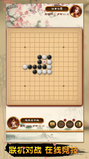 先手要攻,后手要守。以攻为守,以守待攻。遥相呼应,左右逢源。防不胜防,束手就擒矣。五子精华,一子定输赢!小小的五子棋盘中蕴含着此消彼长,阴阳相克的道理! 全民五子棋是一款优雅精致、老少皆宜的五子棋游戏,不仅界面美观、古色古香,而且操作简便、功能齐全。单机玩法可以挑战电脑,多种难度满足各个水平玩家的需求。人人对战可以让你与身边的好友随时开始一场五子棋对弈。联网对战乐趣更加丰富,能挑战各地的玩家,展现自己高超的棋艺。其精美的界面配合上超高的棋力,给人赏心悦目的同时,给予玩家最优的游戏体验。 游戏功能 联机对战,无需注册即可…