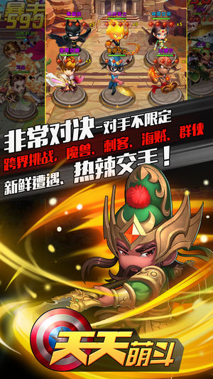 《天天萌斗》是一款打破题材时空界限、离散开放式的掌上大牌Q版手游,游戏中不止一个世界观、阵营、联盟,玩家将面对不止一个次元的对手,华夏、魔幻、超能还有日漫,更多未知的题材等待你来探索!卡牌搜集、大陆征战、角色养成、公会副本、宝物合成和世界boss、竞技场pk、跨服征战等超多玩法。在这里,体验快节奏、扫关卡、炫特效、爽到底的Q版卡牌激斗。 2016年人人都玩的卡牌游戏——《天天萌斗》沿袭MT、刀塔、少三等经典卡牌大作的畅爽卡牌游戏体验,在泛英雄、跨次元的题材上做出革新,以Q萌精致的画风为核心,并在英雄单体大招、合体必杀等技能上放大炫酷、满屏、震屏等效果,力求让玩家体验到超越想象的卡牌激斗和对决…